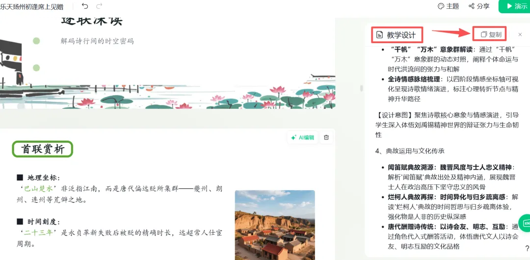7、并且教学设计还有一键复制按钮,直接复制就可以使用了。