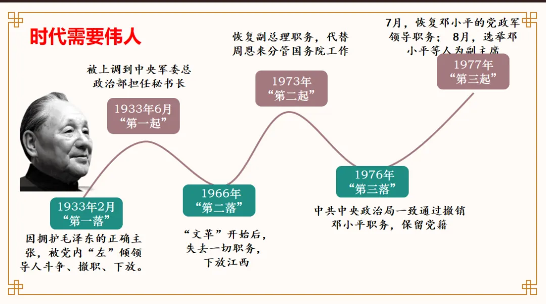 家国情怀感悟邓小平等革命家在历史关头的担当;认识解放思想、实事求是对国家命运的意义,增强道路自信与制度自信。