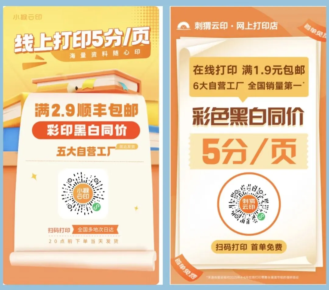说明:两家各有其优点,小猴云印,进入主页,有一个资料菜单,内含小学、初中、高中、大学各个学科的大量资料,如果有用,可以直接打印;刺猬云印,首单免费,价格优惠!