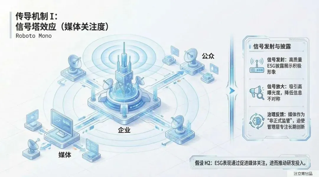 揭秘“流量变现”与“资金松绑”的链式反应! 报告深度挖掘了ESG驱动创新的底层逻辑,发现了一条精彩的“链式中介”通路:ESG表现—>媒体关注度飙升—>融资约束缓解—>研发投入增加,。一方面,良好的ESG表现自带“吸睛”体质,能够显著提高媒体曝光度,降低信息不对称,让企业处于公众和投资者的聚光灯下;另一方面,这种高透明度和良好的声誉充当了“信用抵押”,有效降低了债权人和投资者的风险感知,帮助企业以更低的成本从外部获取资金。通过“媒体+金融”的双重赋能,ESG成功将企业的软实力转化为了硬核的创新资本。