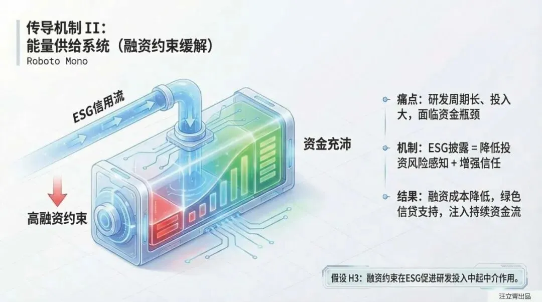 ESG不仅是企业的“道德光环”,更是引爆研发创新的“核燃料”! 长期以来,许多企业将ESG视为单纯的成本投入或公关手段,但这份基于8年大数据的硬核研究给出了截然不同的答案:ESG表现显著促进了企业的研发投入,是企业在高质量发展时代维持竞争优势的必杀技。研究表明,优异的ESG表现能有效激发企业的创新活力,但这并非简单的线性关系,而是通过一套精密的“组合拳”机制实现的——它能显著缓解企业面临的融资约束,为通过高风险、长周期的研发活动输送源源不断的“弹药”,让企业在激烈的技术博弈中敢于投入、敢于领先,。