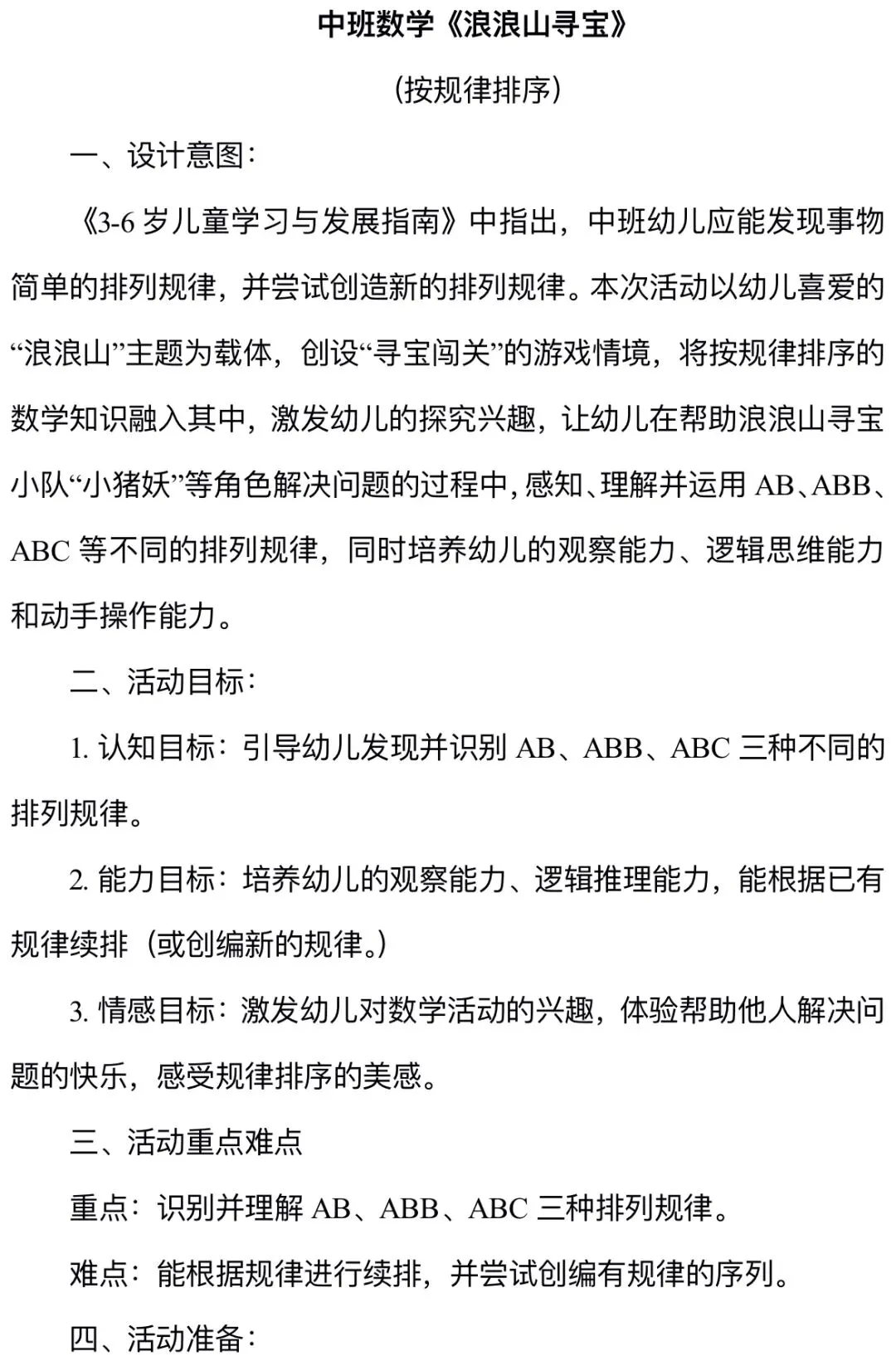 中班数学《浪浪山寻宝》
